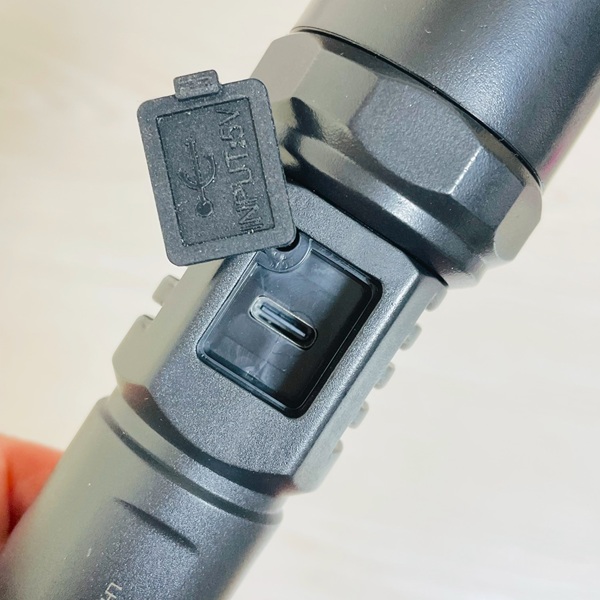 充電式LEDライトはスイッチの裏側にType-C充電ポートがあります。